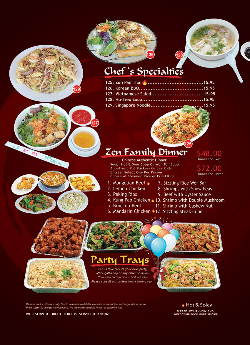 Since its inception in 2014 at California, Zen Asian Diner Chinese Restaurant has grown to become a favoured brand for foodies to get their hands on flavorful adventures that the Chinese cuisine offers. Coastal, forest, tropical, and mountainous cultures within Chinese have all contributed to the rich tastes and aromas you experience in each morsel.